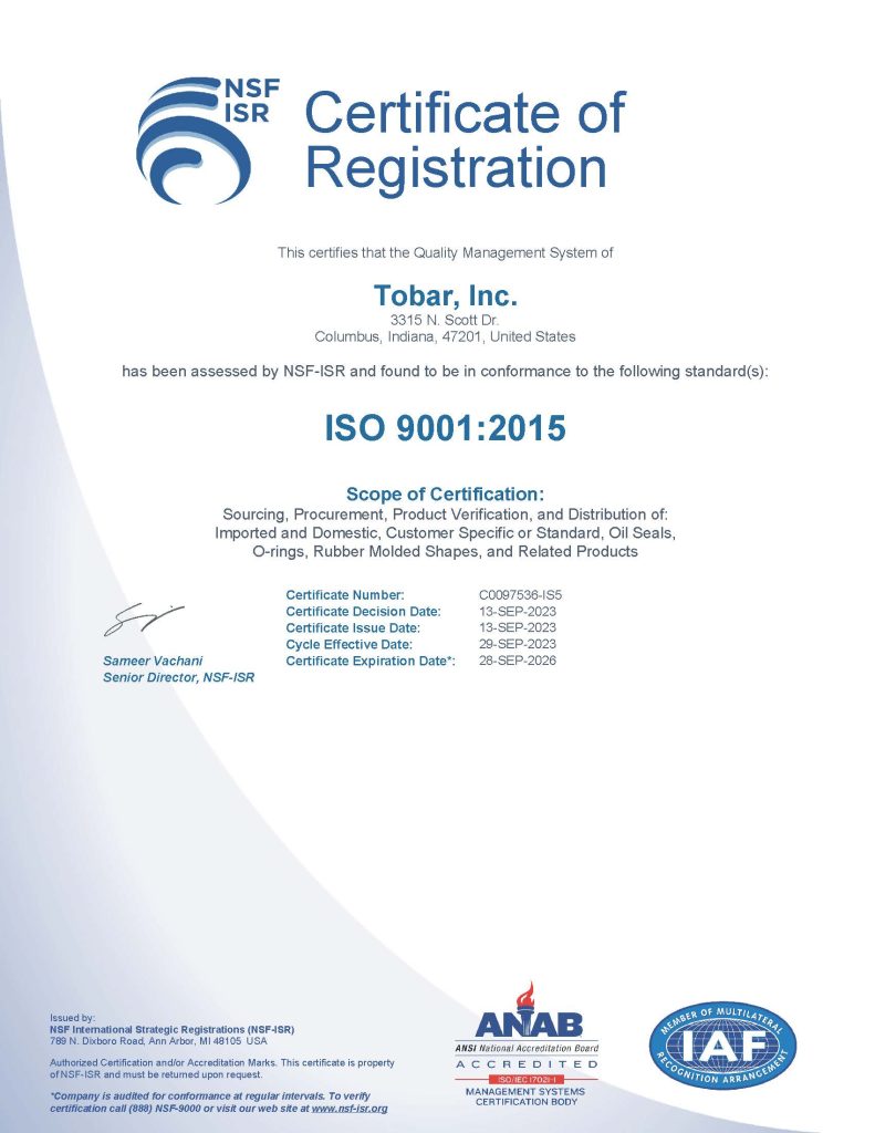 Quality is part of our everyday business practice. Tobar, Inc. was committed to quality when we began business in 1987 and continued to improve our systems with: